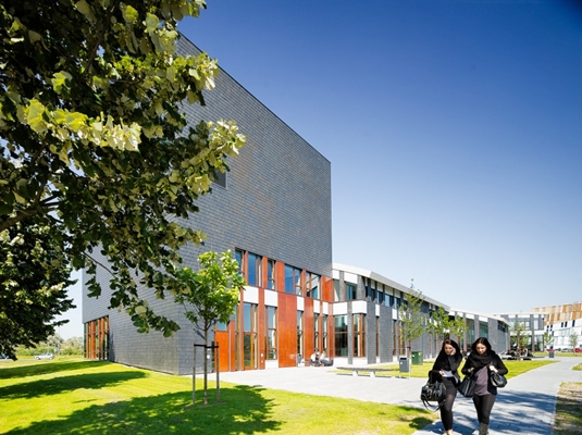 ontworpen gebouw is ingebed in het landschap. Daardoor is een stedenbouwkundige overgang tussen twee schaalniveaus gecreëerd en aansluiting gevonden met het naastgelegen