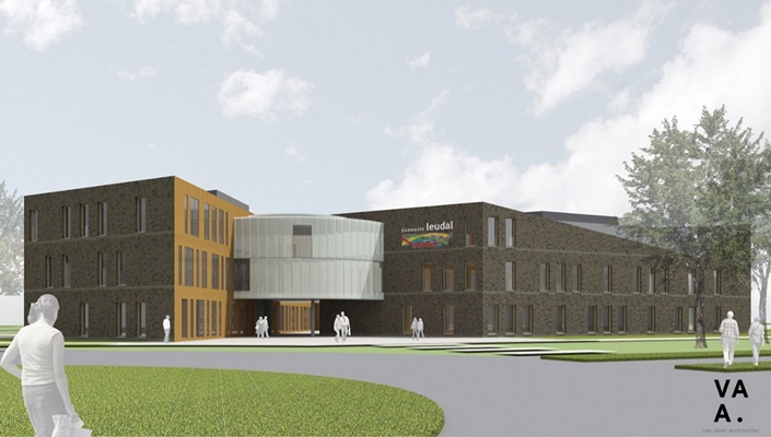 Vorige week werd het hoogste punt bereikt van het nieuwe gemeentehuis in Leudal. Het gebouw is ontworpen door