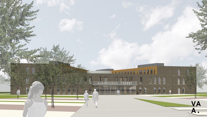 Het nieuwe gemeentehuis bestaat uit twee kantoorvleugels en een personeelsrestaurant. Deze onderdelen bevinden zich rond een binnenplaats. Deze opzet zorgt voor afscherming van de provinciale weg. Het pand bestaat uit schuine, natuursteen leien dakvlakken. “Deze refereren aan de veelvoorkomende gebouwtypologieën in het buitengebied, namelijk boerderijen en schuren,” aldus van aken.
