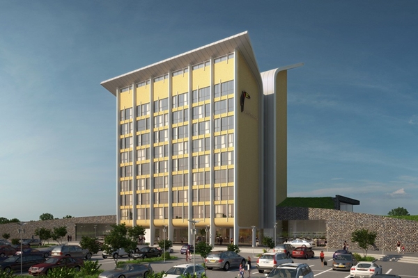 De 74 hotelkamers tellende toren is voor het beeld in twee delen gesplitst, die van elkaar gescheiden worden door een transparant middenstuk. Beide delen zijn voorzien van een eigen dakkap die naar boven toe ten opzichte van elkaar uiteenwijken, waardoor er twee afzonderlijke ranke bouwdelen ontstaan.