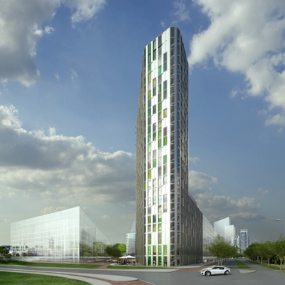 “Het gebouw bestaat uit een compacte kern van logistieke faciliteiten, daaromheen bevinden zich de verblijfsruimtes waar zoveel mogelijk daglicht kan toetreden. De hotelkamers krijgen glas over de volledige hoogte voor ruimtelijke kwaliteit en een adembenemend uitzicht. In iedere kamer bestaat de mogelijkheid om natuurlijk te ventileren met buitenlucht, zelfs op de twintigste verdieping”, zeggen de betrokken architectenbureaus.