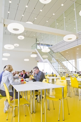 In de toren bevinden zich de kantoren en laboratoria. Alle functies zijn georganiseerd rondom het atrium, dat het hart van het nieuwe gebouw vormt. De nieuwbouw heeft een vloeroppervlak van 25.000 vierkante meter, en telt dertien verdiepingen en 248 behandelplekken.
