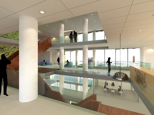 Het ontwerp omvat 13.500 vierkante meter kantoorruimte, een publiekshal met expositieruimte, vergaderruimten, een parkeergarage met 450 openbare parkeerplaatsen en 400 fietsenstallingen voor bezoekers en werknemers.