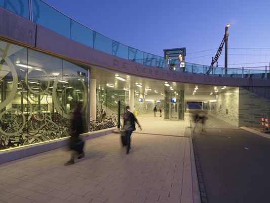 , een ontwerp van Kuiper Compagnons. Verderop kan vanuit de onderdoorgang de perrons worden bereikt. Die perrons zijn voorzien van nieuwe, transparante kappen.