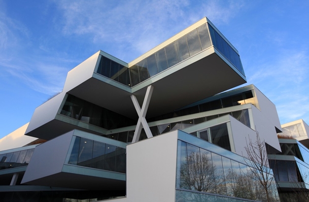 In de Zwitserse stad Allschwill is een sculpturaal kantoorgebouw opgeleverd naar ontwerp van het eveneens Zwitserse architectenbureau Herzog & de Meuron. Het gebouw biedt ruimte aan kantoren van farmacieconcern