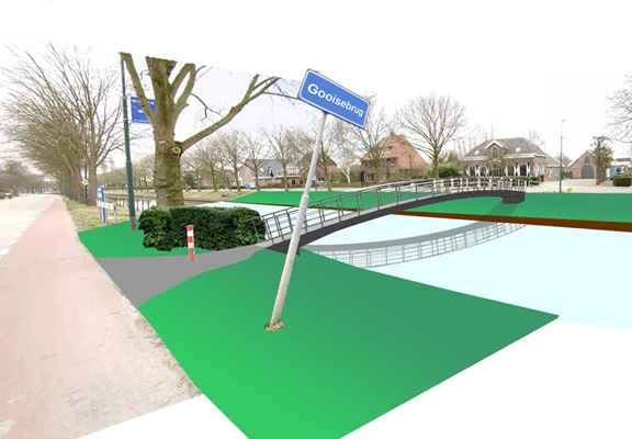 De Gooisebrug, zoals de loopbrug heet, beslaat van oever tot oever twintig meter zonder steunpunten in het midden. De brug is 1,60 meter breed en heeft een trapeziumvormige doorsnede.