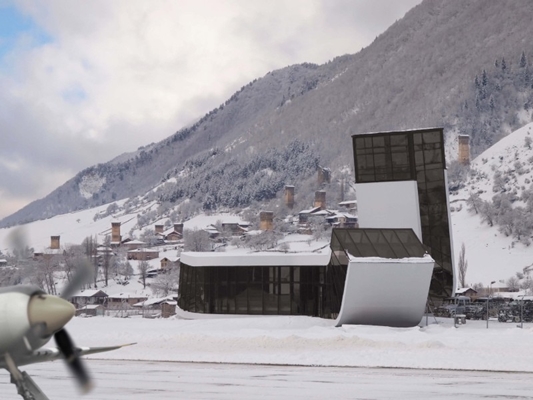 Om het toerisme een impuls te geven, heeft de Georgische plaats Mestia een nieuwe luchthaven in gebruik genomen. Het bijbehorende gebouw is ontworpen door