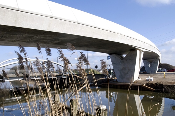 Om een zo groot mogelijke eenheid in het architectonische beeld te krijgen is de brug volledig in beton uitgevoerd. Het geheel is voorzien van een coating met een wittint. De brug is door ONL zo gedetailleerd dat lekstrepen door hemelwater worden voorkomen. Op het beton wordt op de daartoe geëigende plaatsen een extra antigraffiti coating aangebracht.