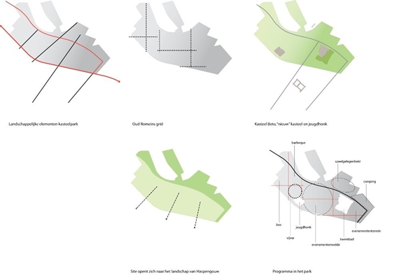 “Om het oude kasteel met het ‘nieuwe’ kasteel te verbinden leggen we een nieuw parknetwerk aan dat verbonden is met het omliggende landschap van Haspengouw en het historisch centrum van de stad Tongeren.”