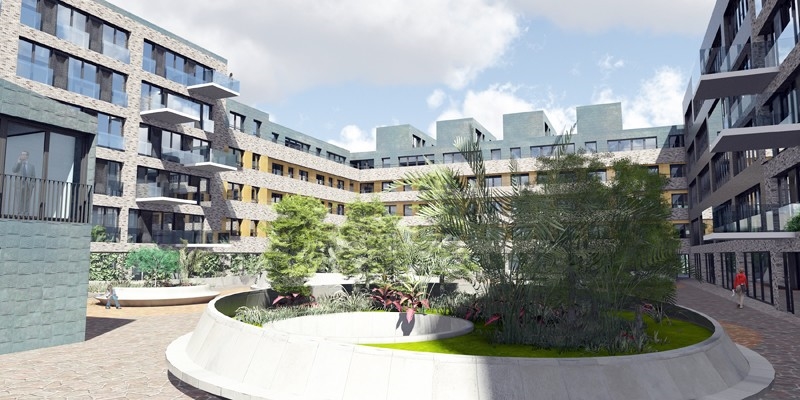 De twee getrapte woongebouwen bevatten straks 162 appartementen, 122 ondergrondse parkeerplekken en zo’n 2.500 m2 aan commerciële ruimte in de tweelaagse plint.