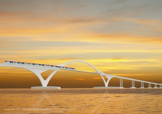 “Om een spoorlijn niet helemaal uit te sluiten, is ervoor gekozen twee referentievarianten - een spoorlijn via de Hollandse Brug en een spoorlijn door Markermeer/IJmeer - te actualiseren. Vanuit de markt wordt de combinatie van openbaar vervoer en een weg niet hoog aangeslagen.”