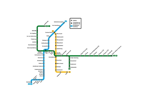 wordt NS-station Diemen verplaatst naar een nieuw overstapstation, op de kruising tussen de IJmeerlijn en de bestaande spoorlijn tussen Amsterdam en Hilversum. Door het metronetwerk op sommige plaatsen te integreren met het spoor, worden beide vervoersmogelijkheden complementair aan elkaar. Daarnaast voorziet het plan in drie nieuwe haltes, die elk nieuwe ontwikkelingskansen bieden.