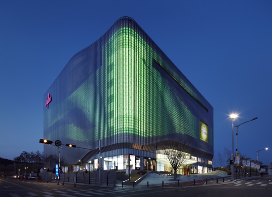 De 66.000 vierkante meter omvattende Galleria Cheonan vormt wegens zijn centrale positie een blikvanger. Om deze functie te versterken, heeft het gebouw een bijzondere gevel.