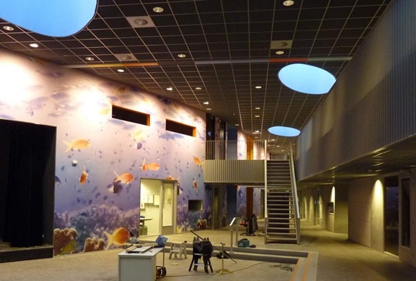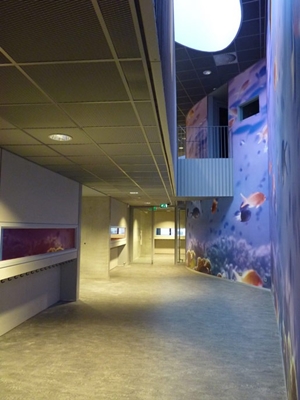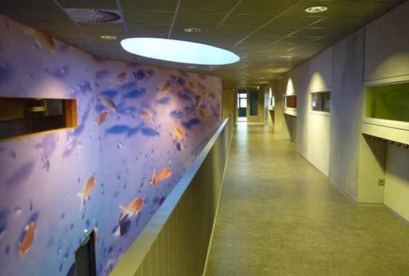 De entree komt uit op de centrale hal, van waaruit zicht is op alle functies. De twee scholen, een openbare en islamitische, hebben er elk hun eigen domein en plek voor vieringen. Beeldbepalend element in de hal is een fotoprint van een onderwaterwereld, refererend aan de naam van het complex.