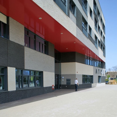 Woensdag wordt de multifunctionele accommodatie Atolplaza in Lelystad geopend. De verschillende functies worden verenigd door de gevel, een lappendeken van drie kleuren metselwerk.