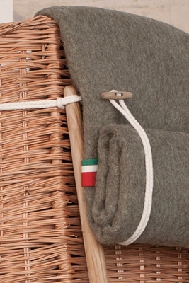 In het ontwerp wordt verwezen naar het kleine krukje dat als hulpmiddel wordt gebruikt om met een volle Gerla Basket te kunnen opstaan. Een klein detail is de Italiaanse vlag die gestikt is op de deken die over de stoel hangt.