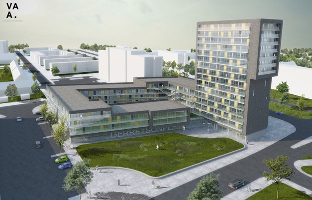 heeft een nieuw woon- en winkelcomplex ontworpen dat het oude winkelcentrum aan het Gerretsonplein in Eindhoven zal vervangen. Het slangvormig gebouw omvat ruim 19.000 vierkante meter.