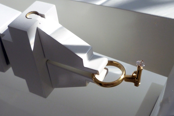 Na een druk op de knop tilt de robotarm, vervaardigd met 3D-printing, de ring Lady Killer op en toont het sieraad vanuit verschillende hoeken ‘aan haar’. Vervolgens biedt de arm de gouden ring aan, waarbij tegelijkertijd het pistooltje – het decoratieve element op de ring – op ‘haar’ wordt gericht. Kan ze nog weigeren?