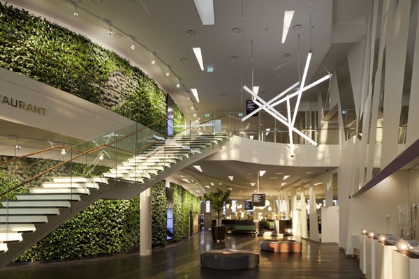 De torens staan vijftien graden uit het lood en vormen van een afstand een sculpturaal geheel. Ze staan echter los van elkaar en worden verbonden via luchtbruggen. Aan het hotel zit verder nog een congrescentrum vast. Over het interieur zegt 3XN dat dit is ontworpen als een ‘smaakvol Scandinavisch huis met warmte, licht en verbinding met de natuur’.