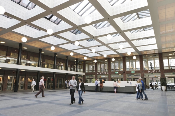 De gebouwdelen worden via een glazen brug met het hoofdgebouw verbonden. De entree heeft een glazen dak voor extra lichtval. In het midden van het ziekenhuis zijn vijf patio’s aangelegd met houten zitbanken en kunstobjecten.