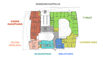 De verhuurbare ruimtes in het gebouw kunnen door alle gebruikers worden benut. Daarnaast kunnen de klaslokalen van de scholen worden gekoppeld aan de gemeenschappelijke voorruimtes door middel van beweegbare systeemwanden.