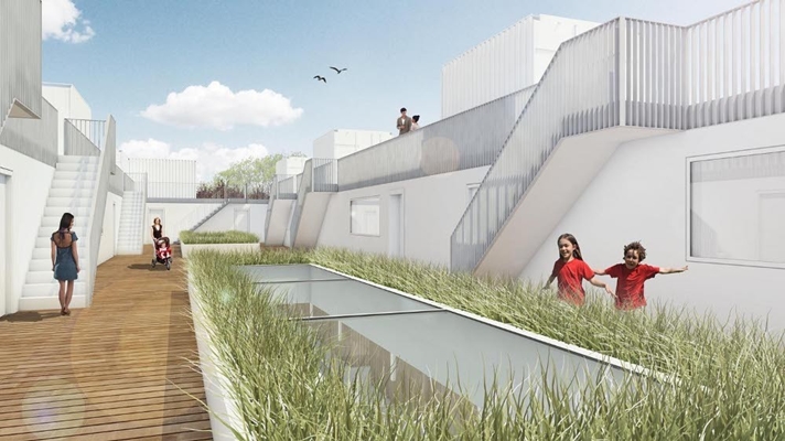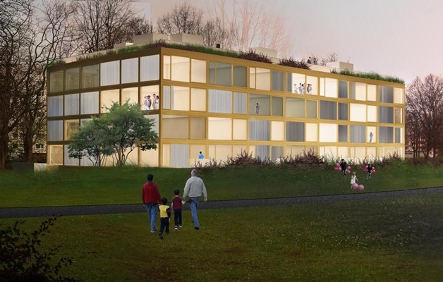 heeft de prijsvraag gewonnen voor een sociale woningbouwcomplex in Bremen. Het appartementencomplex bestaat uit gezinswoningen en lofts voor vrijgezellen.