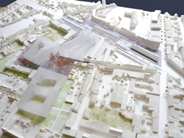 Het ontwerp bestaat uit drie gebouwen die met elkaar verbonden zijn door een publiek plein. Hier rondom liggen stedelijke pleinen, publieke tuinen, galerijen, binnenplaatsen, straten en achterpadden.