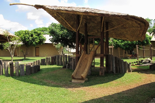 bevat ‘klaslokaalpaviljoens’ en ‘salapaviljoens’. De buitenmuren van de klaslokaalpaviljoens zijn gemaakt van kleisteen, de binnenmuren van platgeslagen aarde. De ramen in de klaslokalen zijn gemaakt van glas afkomstig van de ‘deur’ van wasmachines en glazen flessen. De salapaviljoens zijn bestemd voor de algemene functies als de kantine en de aula. Het ‘dak’ van deze paviljoens is gemaakt van geweven bamboe.