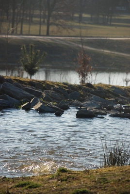 Ook het watersysteem neemt een belangrijke plek in het park. Dit systeem bestaat uit een aantal plassen, waterlopen en een gemaal dat ontworpen is door Van Helmond | Zuidam architecten