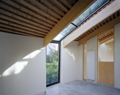 De begane grond heeft drie schuifpuien die de bewoners vanaf elk deel van de woonkamer/ keuken en de hal toegang geven tot de grote tuin.