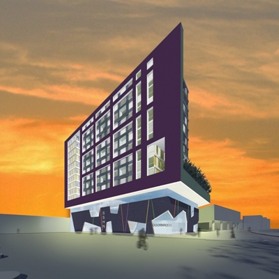Het ontwerp bestaat uit een roze voorgevel met in de plint poppodium Doornroosje. In het plan worden ook 350 studentenwoningen van Stichting Studentenhuisvesting Nijmegen gerealiseerd. Het complex krijgt een ondergrondse fietsenstalling met 3700 plaatsen.