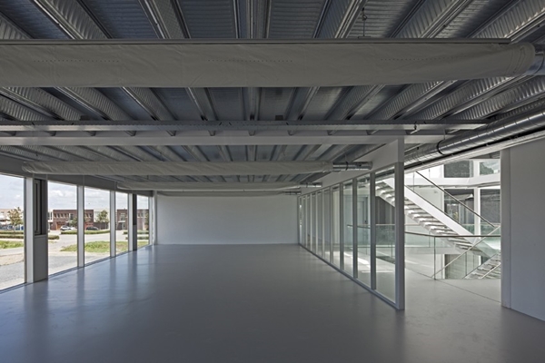 Het gebouw ontleent zijn uitstraling grotendeels aan het gekromde, begroeide dak. Wie aan de andere kant staat, ziet een eigentijds kantoorgebouw met een hoge mate van transparantie. Het contrast zet zich binnen voort, waar vanuit een industrieel interieur ruim uitzicht wordt geboden op de overwegend groene omgeving.