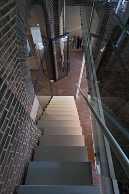 “Ter wille van de architectonische duidelijkheid is ervoor gekozen om deze bescheiden uitbreidingen vorm te geven als abstracte volumes. De volumes zijn evenals de entresolvloeren los gehouden van de bestaande monumentale metselwerkgevels.”