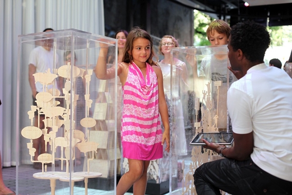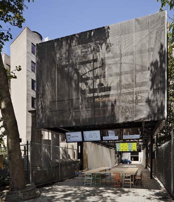 Het Lab, opgebouwd uit een constructie van carbonfiber (normaal toegepast bij auto’s en motoren), staat tot en met 16 oktober opgesteld in East Village (Manhattan). Het bouwwerk is ingepast in een dichtbebouwde omgeving, feitelijk door het in een nauw straatje tussen twee belendende gebouwen te pluggen.