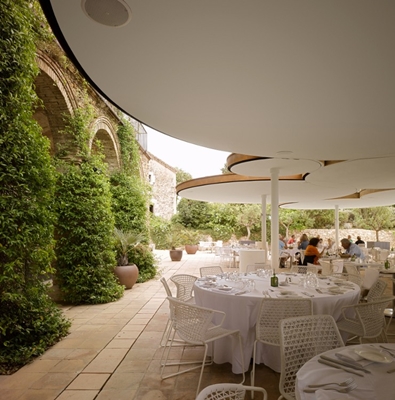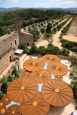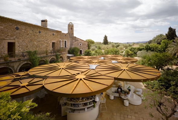 In het Spaanse dorp La Bisbal is een bijzonder terras naar Nederlands ontwerp geopend. Het terras naast hotel Castell D’emporda is overdekt met twaalf versmolten parasols. Hoewel de constructie een uitbreiding van een historisch kasteel is, wekt het terras een ‘losse’ indruk.