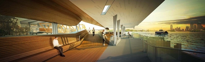Begin dit jaar werd Brisbane getroffen door ernstige overstromingen, die onder meer de oude aanlegplaatsen voor veerboten vernietigden. Ter vervanging zocht de stad een nieuw type dat bestand is tegen vloed. Het winnend ontwerp bestaat uit een ponton, dat is bevestigd aan een grote mast die tevens als herkenningspunt voor de terminal fungeert.