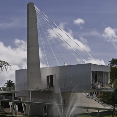 Het Musevi-museum heeft een met metalen panelen bekleed exterieur dat op betonnen palen wordt gedragen. De zuidelijke helft wordt ondersteund door betonnen spijlen die aan een mast zijn bevestigd.