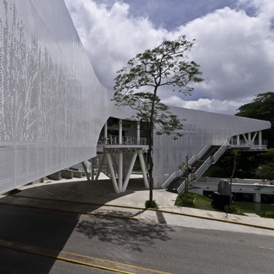 ontworpen gebouw maakt deel uit van een masterplan om drie parken in de omgeving te vernieuwen.