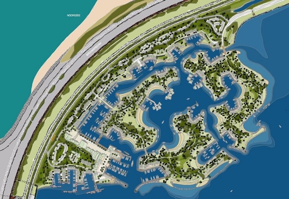 In de Grevelingen en langs de Brouwersdam bij het Zeeuwse Scharendijke moeten een groot vakantiepark en een haven verrijzen. Het plan van tweehonderd miljoen euro omvat drie nieuwe eilanden en een schiereiland waar meer dan vierhonderd woningen komen. Het betrokken architectenbureau is