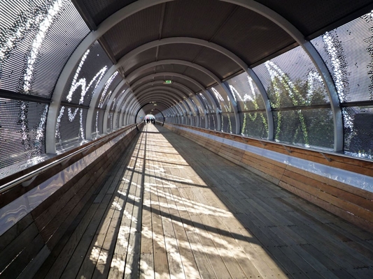 (MVSA) ontworpen voetgangersbrug over het spoor verbindt het treinstation met het Mediapark. De ontwerpers hebben de traverse opgevat als ‘een wandeling in plaats van simpelweg een koppeling tussen twee gebieden’.