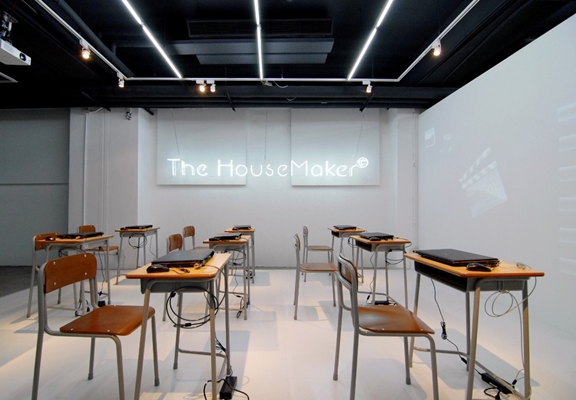 . Bezoekers kunnen met behulp van ‘The House Maker’-software hun eigen woonwensen binnen een verticaal dorp ontwerpen.