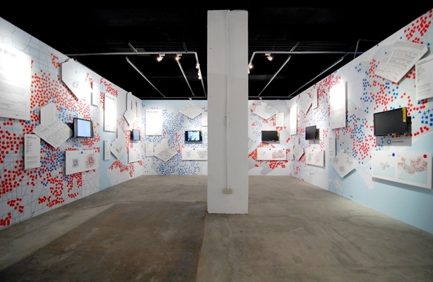 De tentoonstelling omvat analytisch onderzoek, een grid van maquettes, een documentaire en een zes meter hoge installatie van een