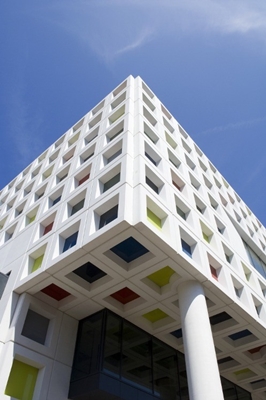 Deze week zijn de eerste scholieren en medewerkers aan de slag gegaan in de nieuwbouw van het Mondriaan College bij station Den Haag Hollands Spoor. Het gebouw, duidelijk geïnspireerd door het werk van de naamgever, maakt deel uit van de onderwijscampus die er aan het ontstaan is.