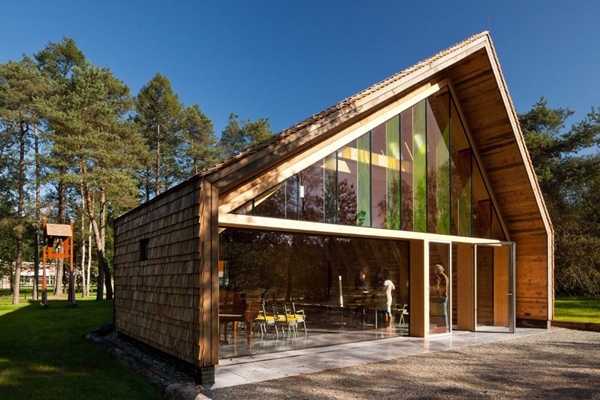 ontworpen gebouw is bijna volledig van hout gemaakt.