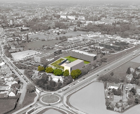 heeft het nieuwe hoofdkantoor van het bedrijf Cipal in Geel ontworpen. De kantoorcampus bestaat uit drie gebouwen die rond een centrale binnentuin zijn gesitueerd.