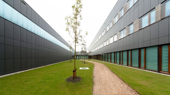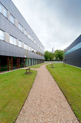 Rond het complex is een parkachtige ruimte ontworpen. Regenwater kan hier enerzijds natuurlijk infiltreren in de grond, anderzijds wordt een deel opgeslagen in ondergrondse kratten. Dit water wordt bijvoorbeeld gebruikt om de toiletten door te spoelen.