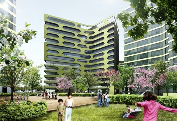 in de Koreaanse stad Suwon ontworpen. De eerste fase van dit woongebied wordt in december van dit jaar opgeleverd.