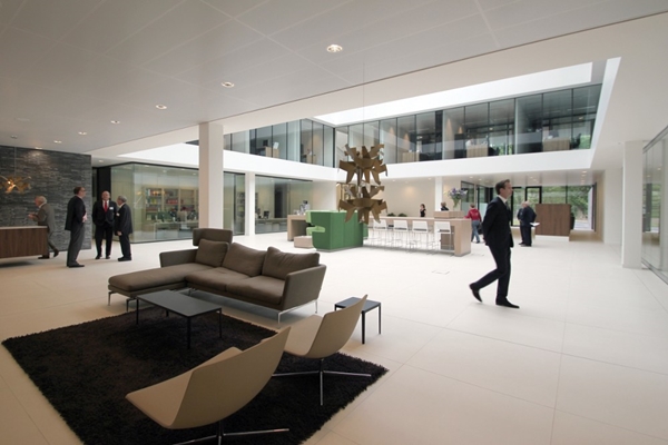 De nieuwbouw is met de oude villa verbonden via een passage. Ondanks dat de villa het hoofdgebouw van het bedrijf is, heeft de nieuwbouw ook een eigen entree gekregen. Deze komt uit op een terras.