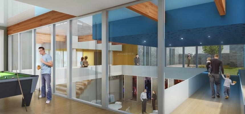 bedachten een ‘dorp in een dorp’ voor het centrum. Dit betekent dat het gebouw is ontworpen naar de ligging van de verschillende functies in een dorp.