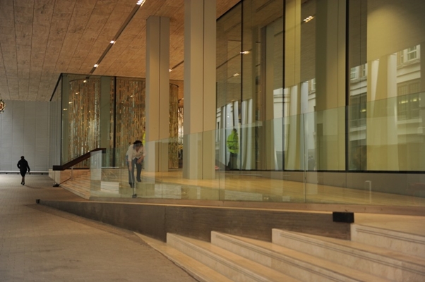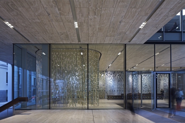 ontworpen New Court-gebouw in Londen is opgeleverd. Het gebouw met een vloeroppervlak van 21.000 vierkante meter is het eerste gerealiseerde project van OMA in Londen.